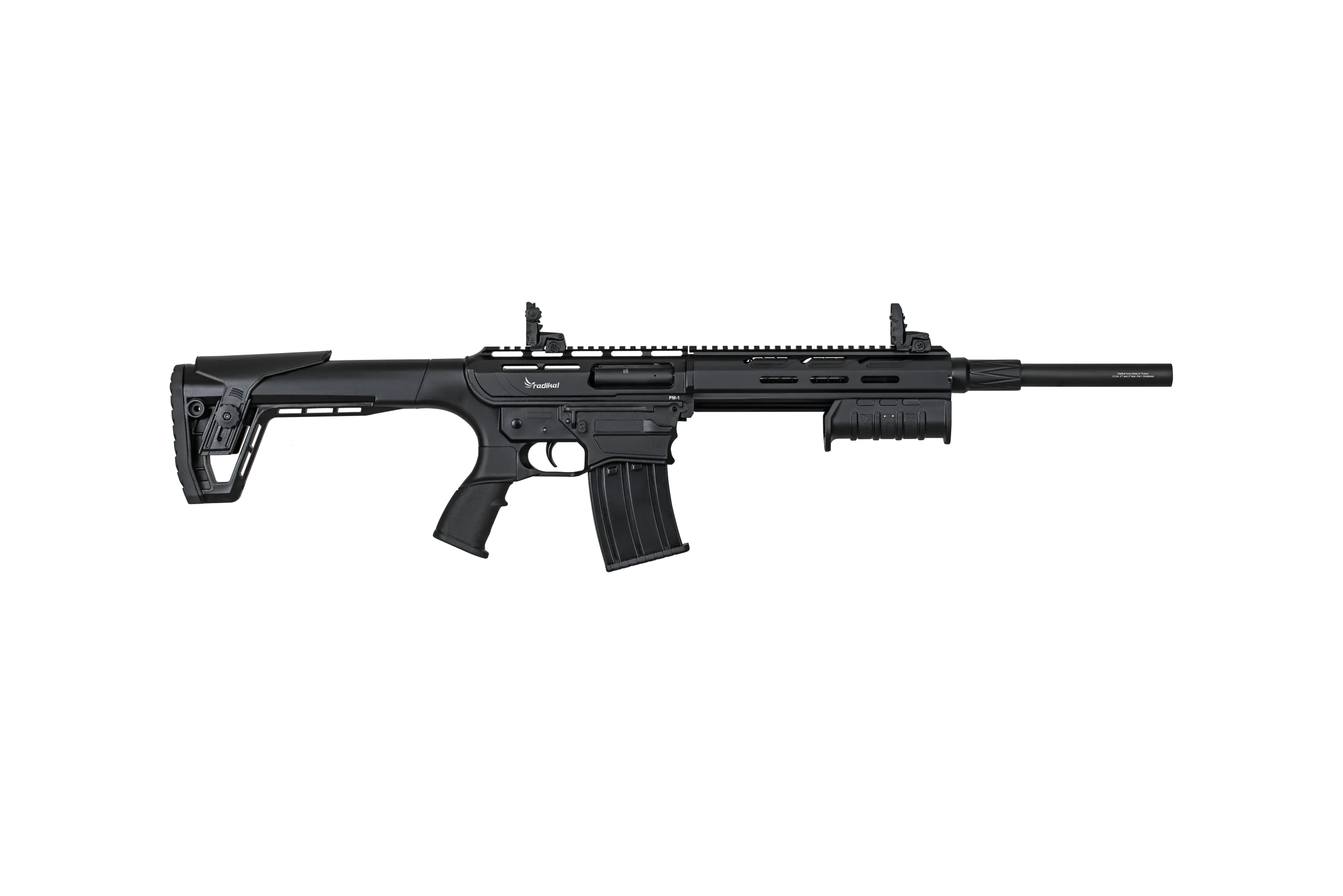 Radikal MP-1 Pump action series combines the rugged, magazine fed design of an ar style shotgun with the reliability and simplicity of a pump action system. Built to handle any load from light target rounds to heavy hitting slugs this shotgun offers unmatched versatility for hunting, home defense, and tactical applications. Featuring detachable steel magazines in 2 , 5 , and 10 round capacities, the mk pump provides fast reloading and consistent performance in any situation. With multiple configurations to fit different budgets and preferences, the radikal mk pump series is a reliable and adaptable option for shooters who demand dependability and power in a modern, mag fed platform.